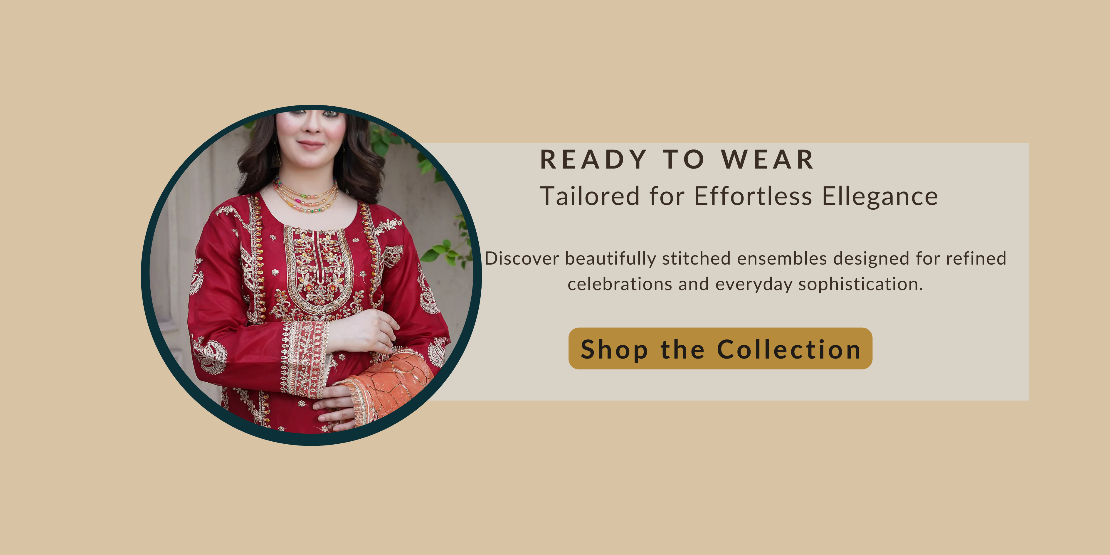 Discover beautifully embroidered lawn and festive fabrics designed to be tailored your way. Each piece reflects timeless craftsmanship, intricate detailing, and refined color palettes — giving you the freedom to create a look that is uniquely yours.